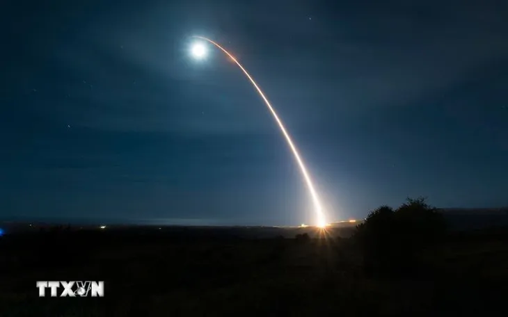 Vụ phóng thử tên lửa đạn đạo xuyên lục địa (ICBM) Minuteman III tại Căn cứ không quân Vandenberg, California, Mỹ ngày 5/2/2020 (Ảnh: AFP/TTXVN)
