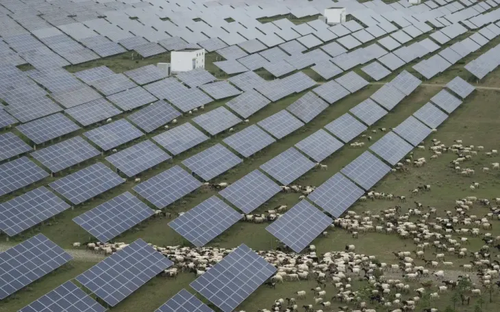 Trang trại điện Mặt trời trên cao nguyên Tây Tạng - đang được Trung Quốc xây dựng - không chỉ tạo ra điện mà còn thay đổi cảnh quan địa phương. Các tấm pin đóng vai trò chắn gió, giữ ẩm đất, giúp cây cỏ mọc lại và tạo môi trường chăn thả cho hàng nghìn con "cừu quang điện".