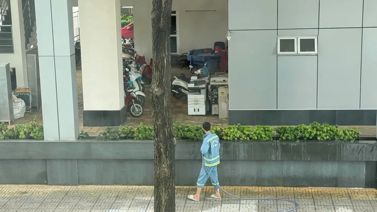 Hàng ngày công nhân vẫn phải duy trì chăm sóc cây xanh trong khuôn viên trung tâm