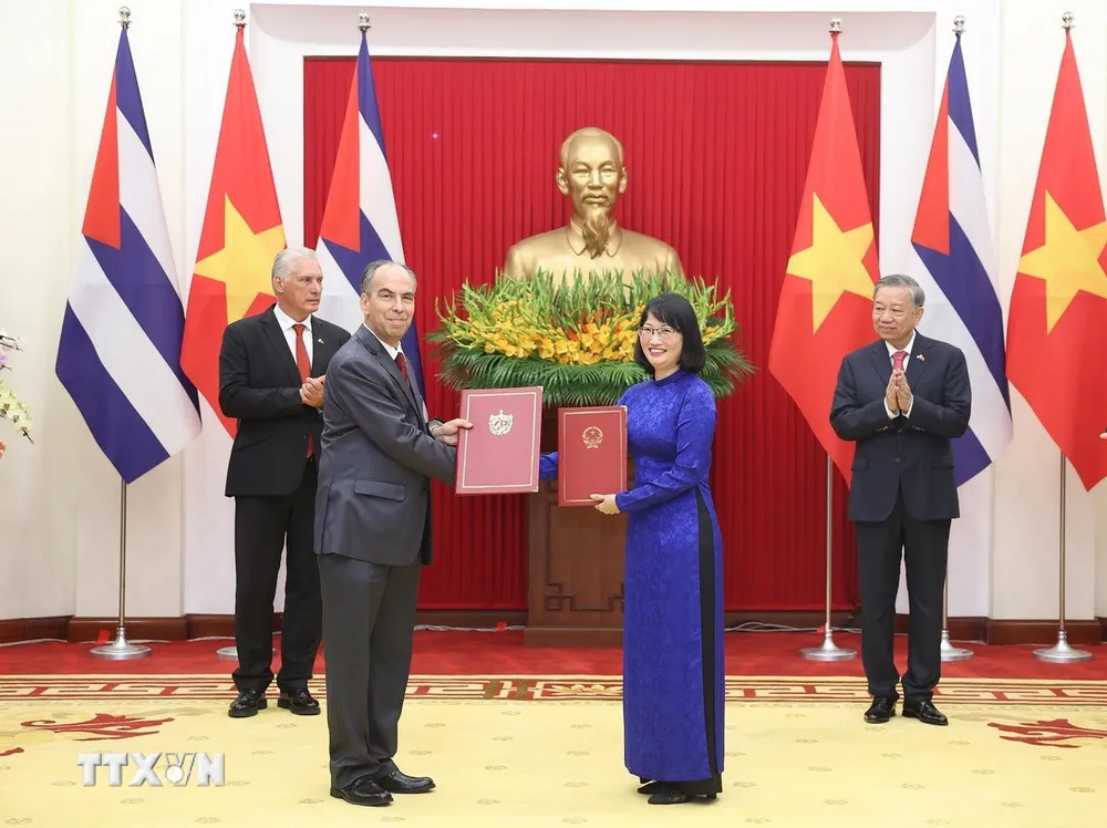 Trong khuôn khổ chuyến thăm cấp Nhà nước tới Việt Nam, ngày 1/9, tại Trụ sở Trung ương Đảng, ngay sau hội đàm, Tổng Bí thư Tô Lâm và Bí thư thứ Nhất Đảng Cộng sản Cuba, Chủ tịch nước Cộng hòa Cuba Miguel Díaz-Canel Bermúdez cùng Đoàn Đại biểu Cấp cao hai nước Cuba và Việt Nam đã chứng kiến Lễ trao các Văn kiện hợp tác.