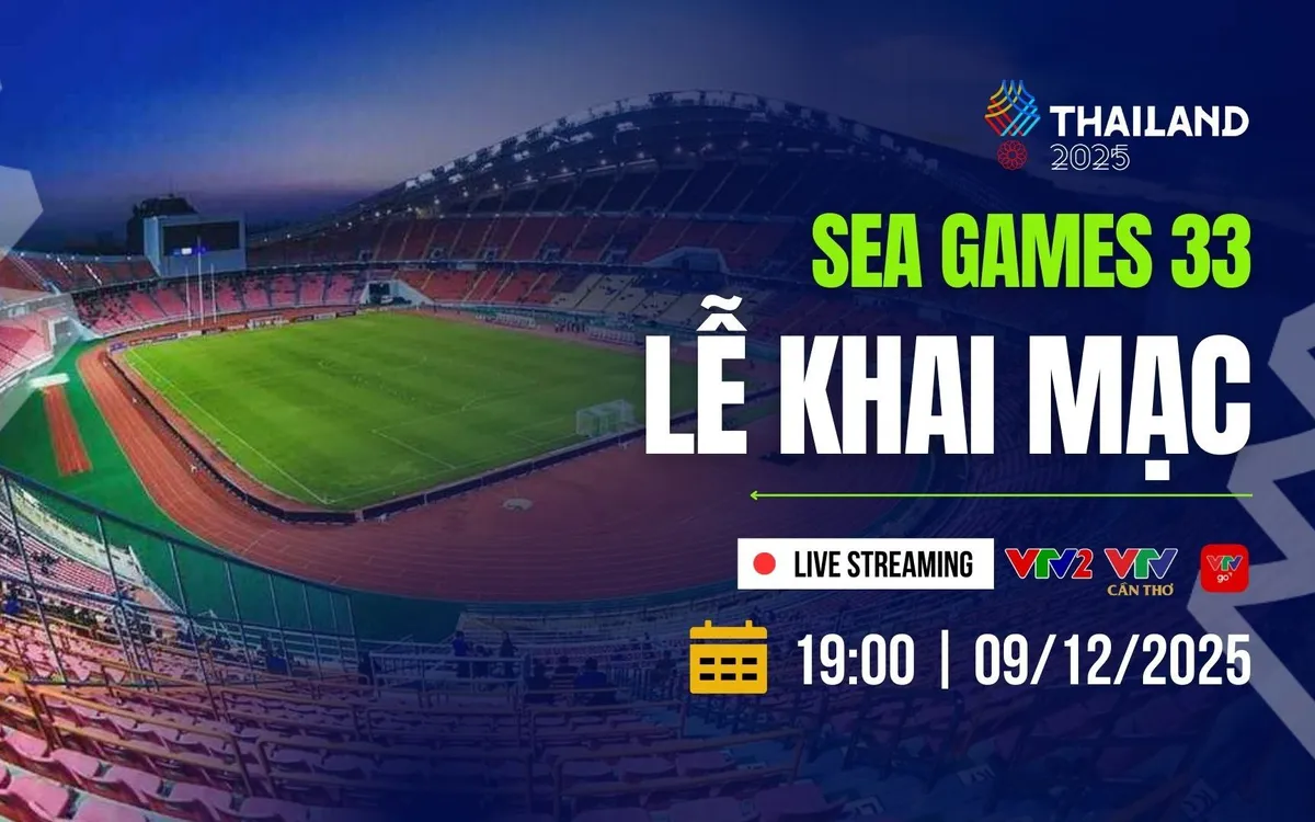 Lễ khai mạc SEA Games 33 được Đài Truyền hình Việt Nam tường thuật trực tiếp trên các kênh VTV2, VTV Cần Thơ và VTVgo lúc 19h00 hôm nay, 9/12.