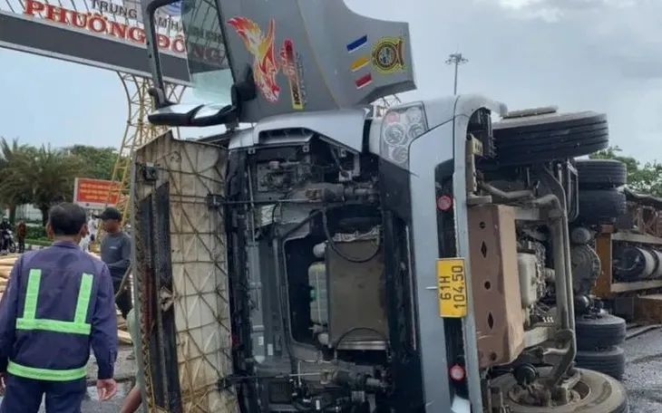 Theo nhận định ban đầu của lực lượng chức năng, có khả năng do trời mưa, đường trơn khiến xe chở gỗ bị mất lái, dẫn đến lật xe.