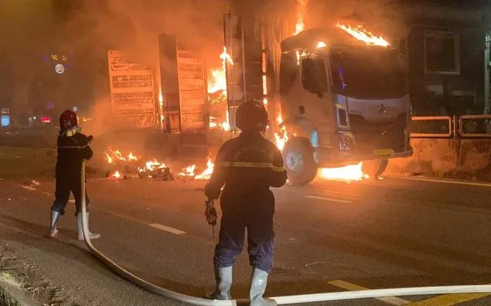 Phát hiện vụ cháy, tài xế nhanh chóng dừng xe, cùng người dân nỗ lực chữa cháy. Tuy nhiên, do thùng xe có nhiều vật dụng dễ bén lửa nên ngọn lửa bùng phát mạnh, lan rộng, cột khói cao hàng chục mét.